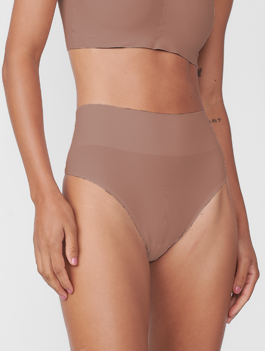 Kit com 6 Calcinhas Biquíni Redutora Sem Costura Segunda Pele Marrom Cacau