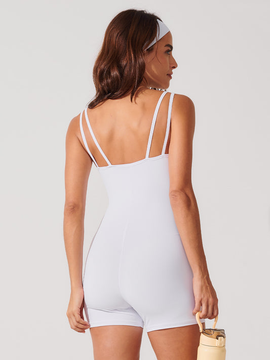 Macaquinho Fitness Modelador com Alças Largas e Costas Cruzadas Branco