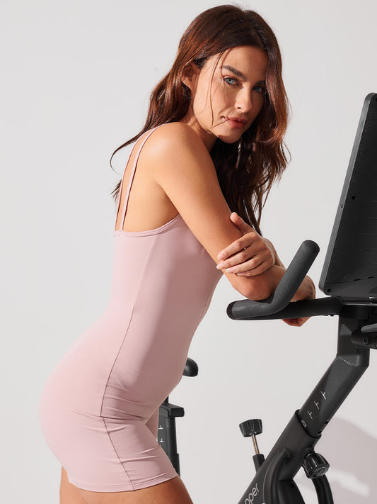 Macaquinho Fitness Modelador com Decote V e Alças Finas Rose