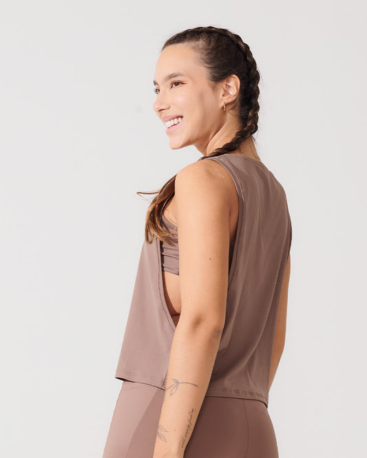 Regata Cropped com Cava Ampla Marrom Cacau