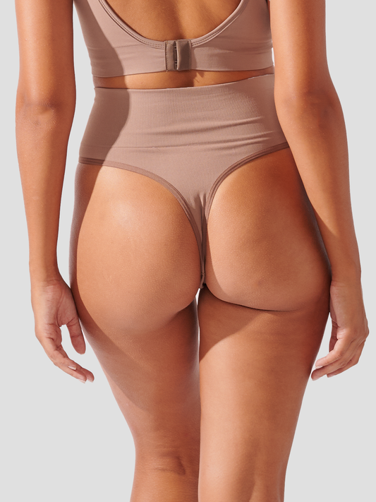 Calcinha Fio Dental Redutora Canelado Sem Costura Premium Marrom Cacau