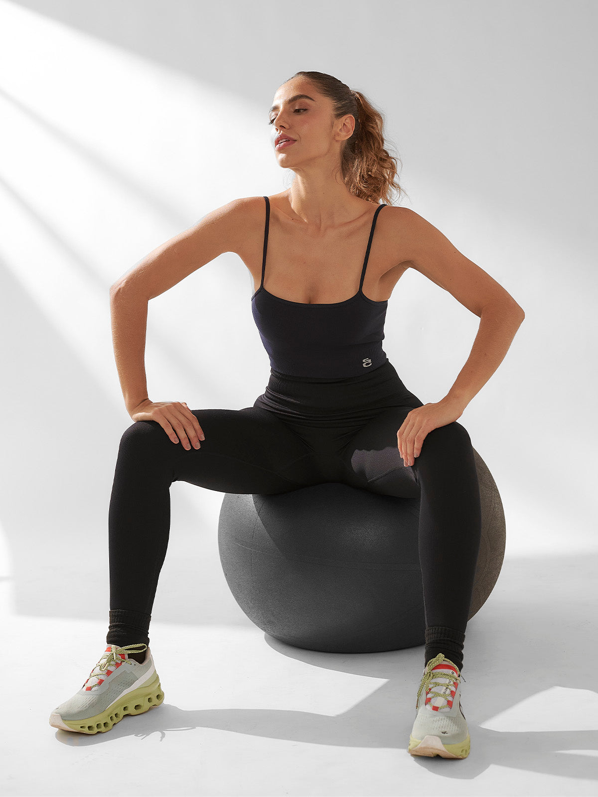 A padronagem vertical do tecido canelado alonga a silhueta, enquanto a compressão realça suas curvas, destacando sua melhor versão.