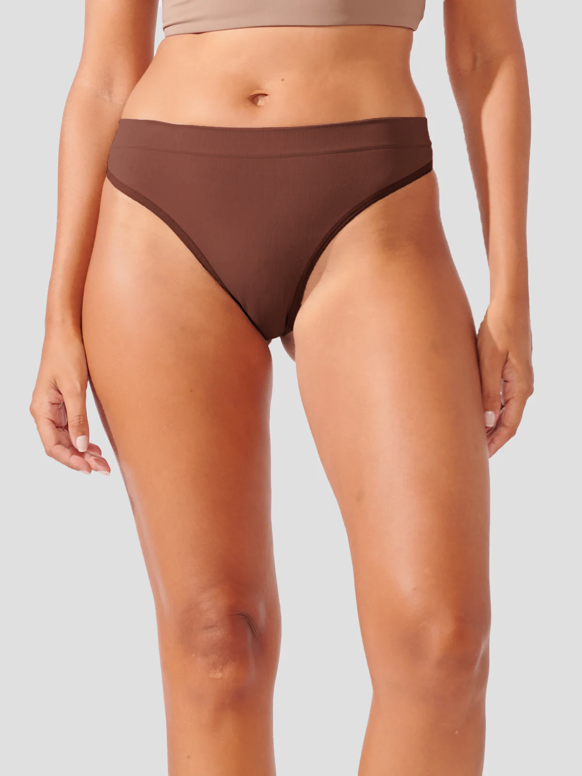 Calcinha Fio Dental Canelado Sem Costura Premium Marrom Cacau