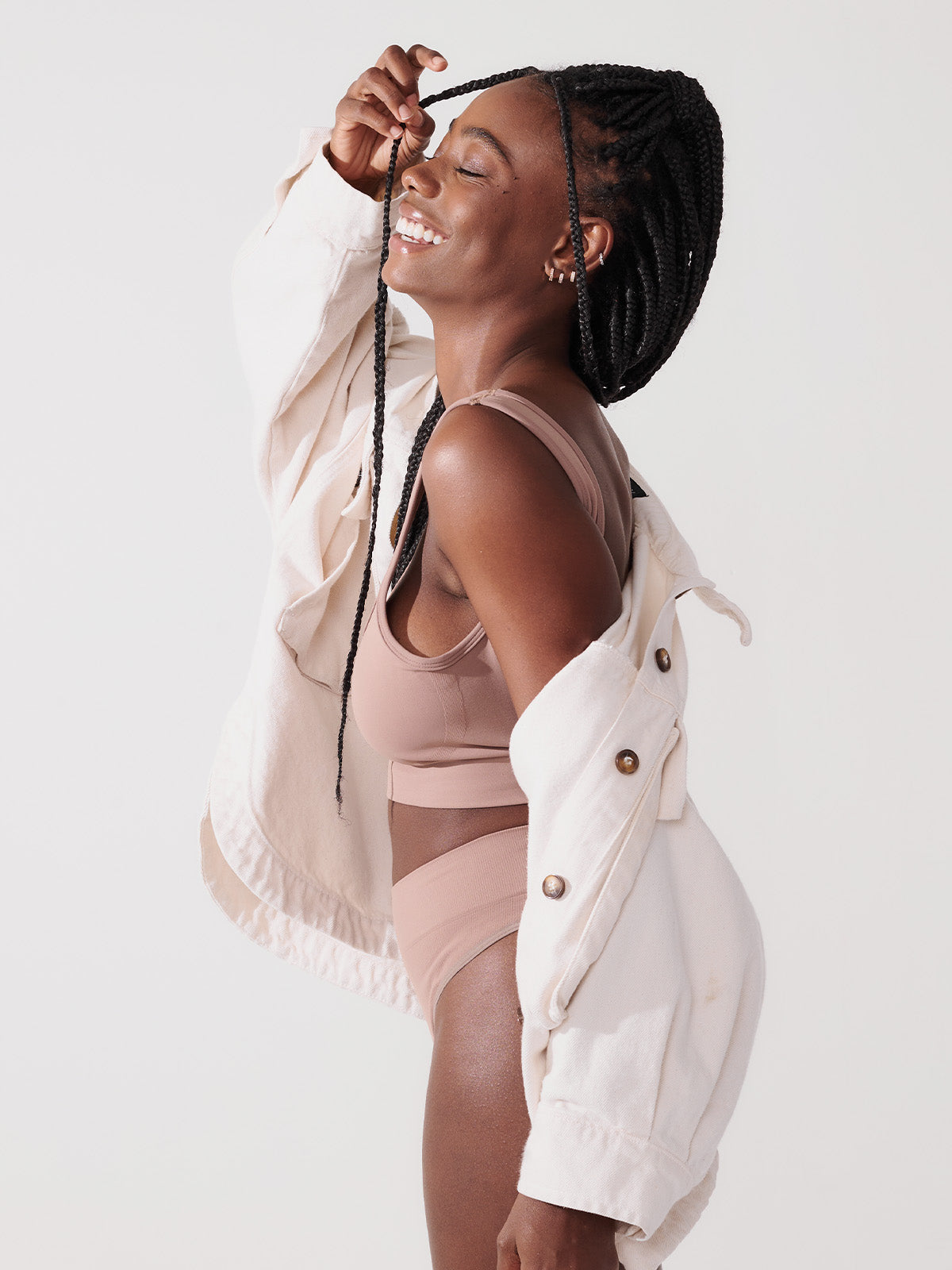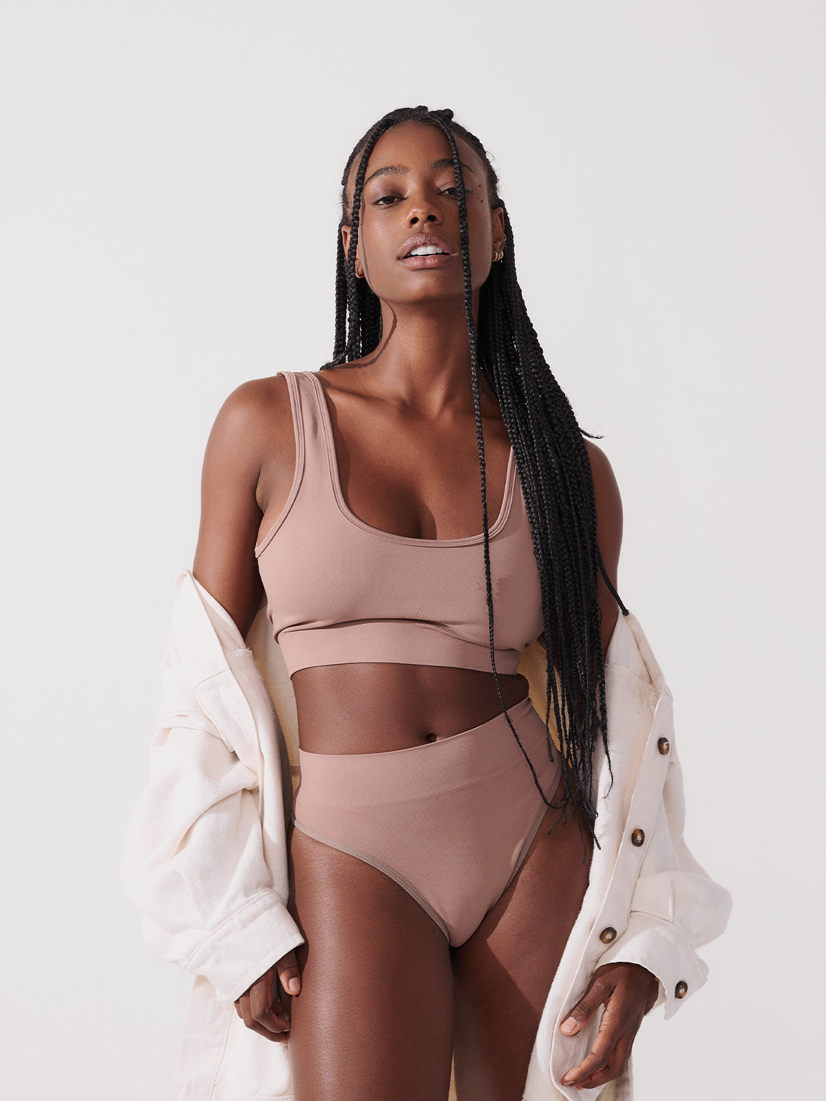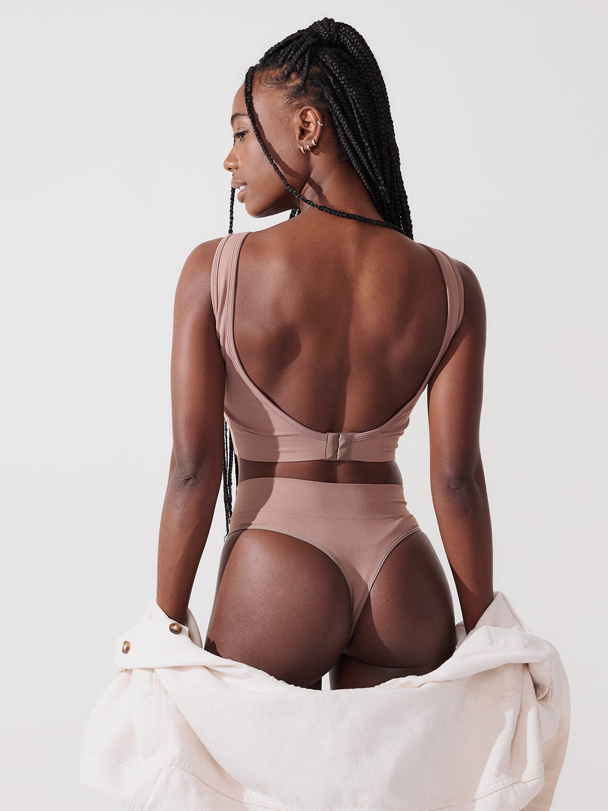 Com tecnologia Seamless e tecido em poliamida premium, as peças proporcionam toque macio, alta respirabilidade e ajuste perfeito ao corpo. O sutiã modela e sustenta com firmeza, sem a presença de aros ou costuras incômodas. Seu cós de 5 cm oferece sustentação na medida certa, ajudando a definir a cintura sem apertar.