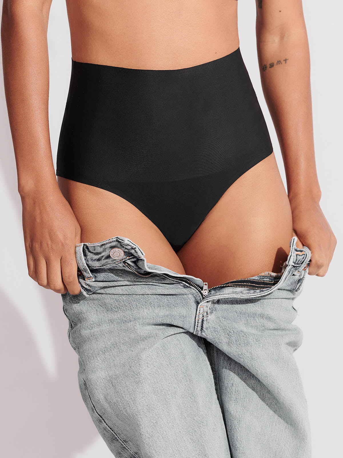 O cós alto de 15 cm proporciona compressão ampla no abdômen e cintura, garantindo efeito modelador uniforme e discreto, ideal para o uso diário.