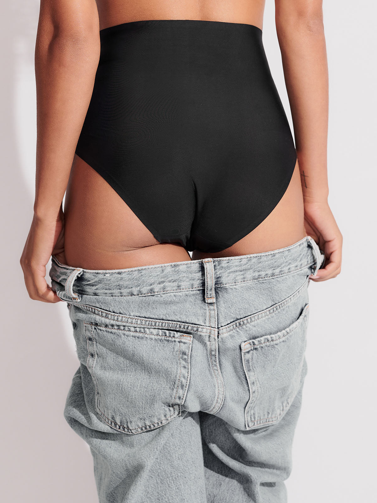 Calcinha Biquíni Cintura Alta Sem Costura Segunda Pele Preto
