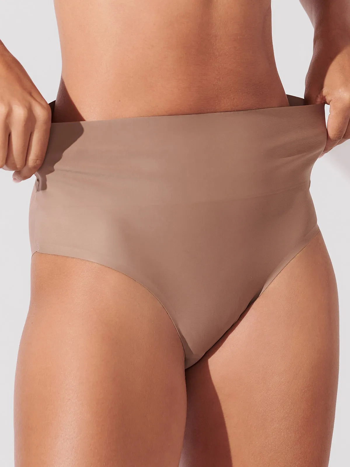 Calcinha Biquíni Cintura Alta Sem Costura Segunda Pele Bege