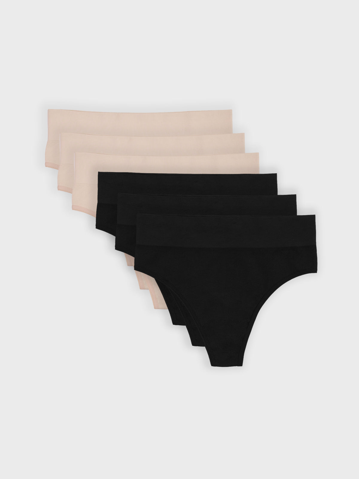 Conheça nosso Kit com 6 Calcinhas Fio Dental Cintura Alta Canelado Sem Costura Premium