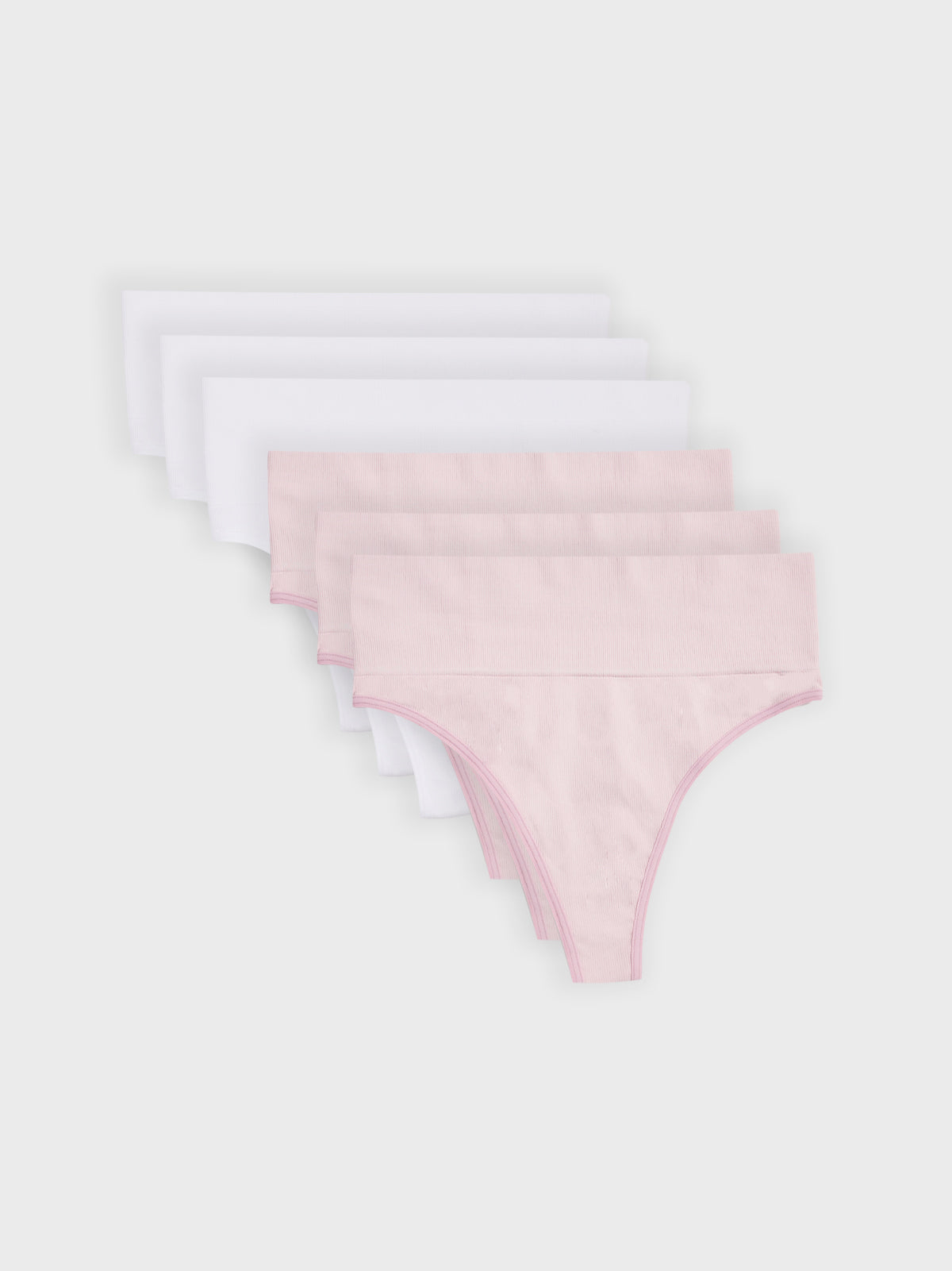 Kit com 6 Calcinhas Fio Dental Redutora Canelado Sem Costura Premium (3 Branco e 3 Rose)