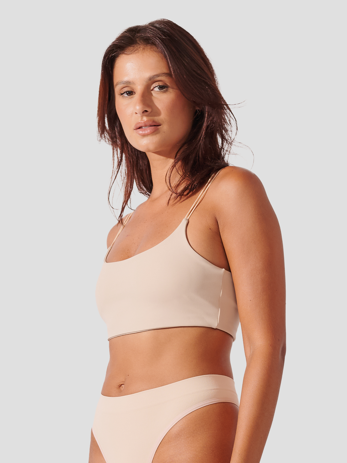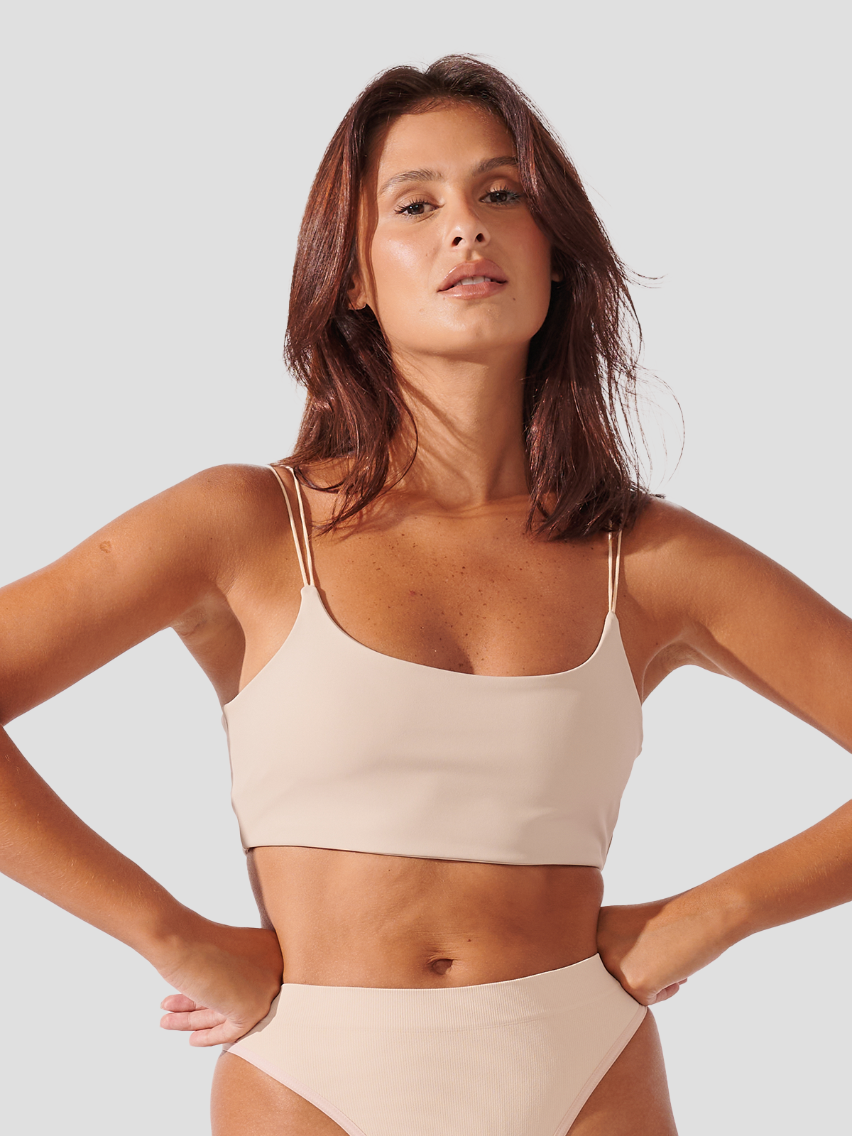 Sutiã Top Alça Dupla com Bojo Removivel Bege