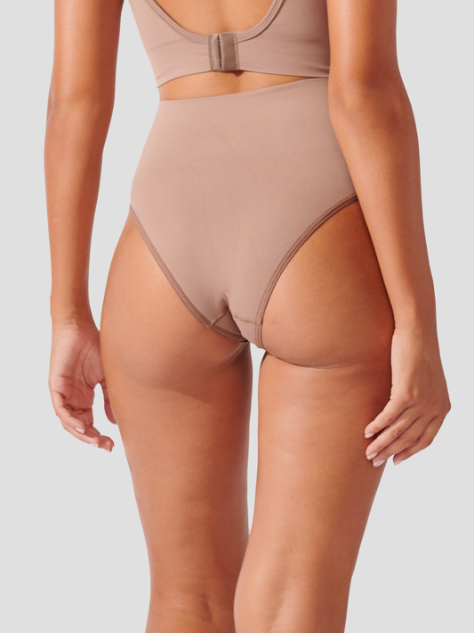 Calcinha Biquini Redutora Canelado Sem Costura Premium Marrom Cacau