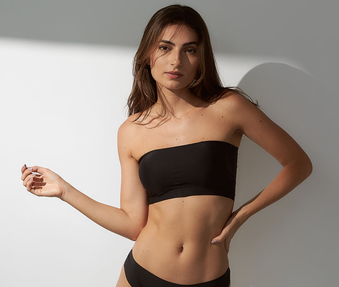 Evite marcas de undewear visíveis em roupas mais justas ou transparentes usando o Top Faixa.