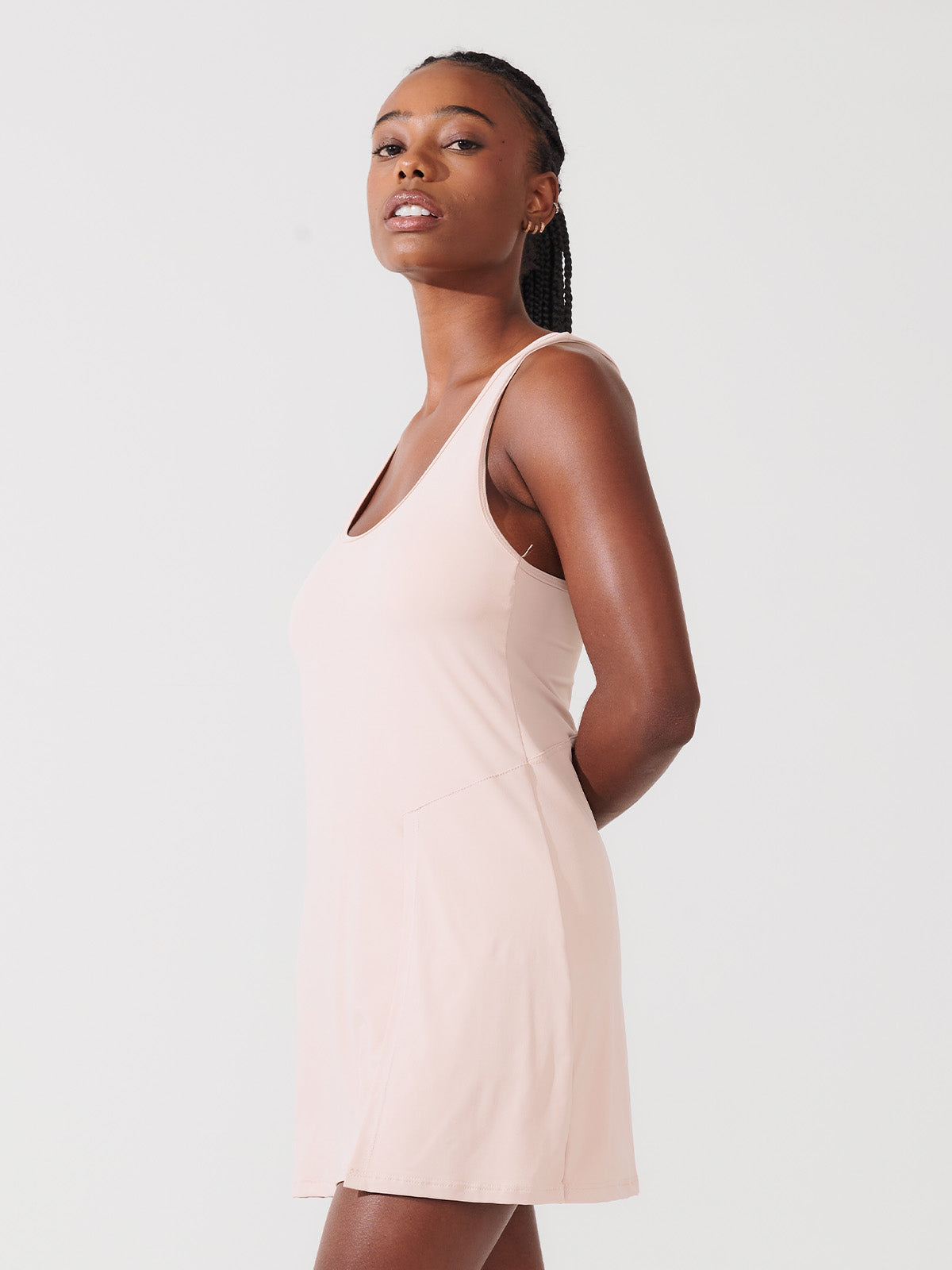 Vestido Fitness Plissado com Shorts e Costas Nadador Bege