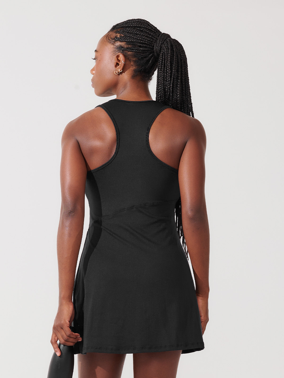 Vestido Fitness Plissado com Shorts e Costas Nadador Preto