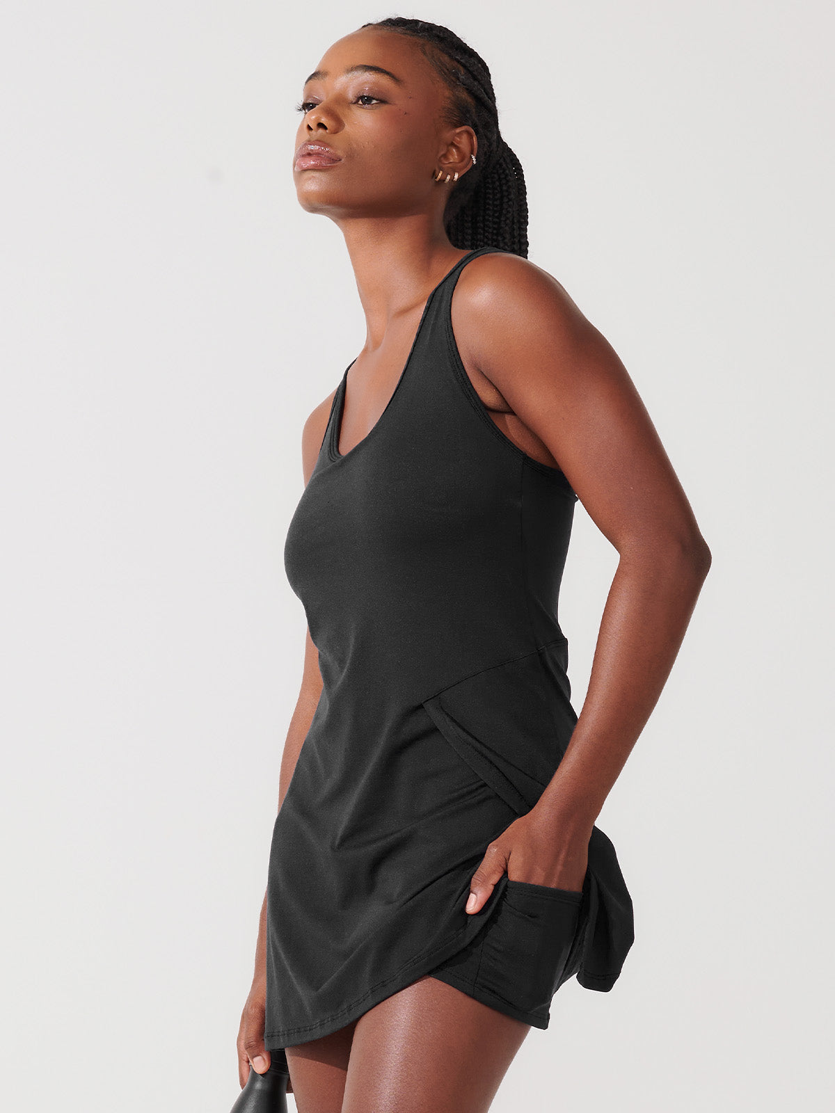 O Vestido Fitness Plissado com Shorts e Costas Nadador combina performance e estilo em uma peça prática e versátil. Possui shorts embutido com bolsos laterais para mais funcionalidade, enquanto a saia plissada garante movimento, leveza e um toque esportivo sofisticado.